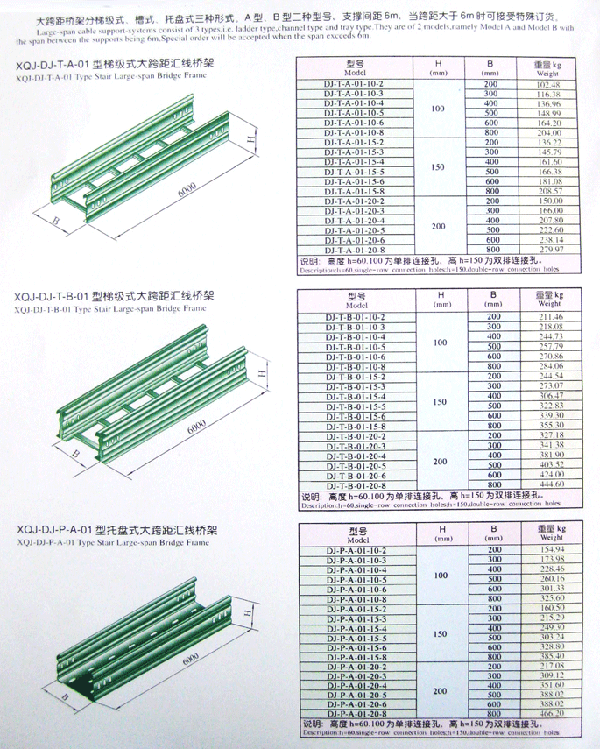 大跨距橋架 大跨距匯線橋架可分為梯級(jí)式、托盤式、 槽式。 梯級(jí)式匯線橋架具有良好的通風(fēng)性能,不防塵、不妨干擾。它適用于敷設(shè)計(jì)算機(jī)電纜 、通信電纜、熱電偶電纜及其它靈敏系統(tǒng)的控制電纜等,它對(duì)控制電纜的屏蔽干擾和重腐蝕環(huán)境中電纜的防護(hù)都有非常好的效果。