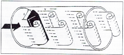 在流體中設置三角柱型旋渦發生體,則從旋渦發生體兩側交替地產生兩列有規則的旋渦,這種旋渦稱為卡門旋渦,如下圖所示,旋渦列在旋渦發生體下游非對稱地排列。