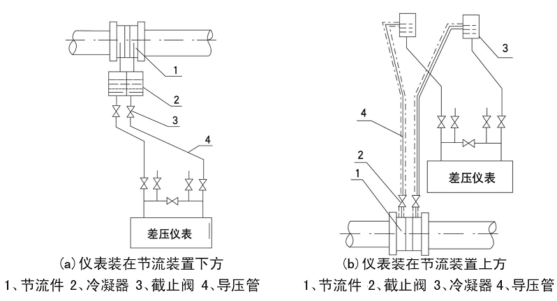 被測流體為水蒸氣時,信號管路的安裝方式如圖