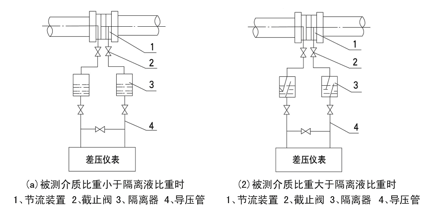 而引壓管線是指孔板流量計與差壓變送器(或差壓計)之間的導壓管路。它是孔板流量計的薄弱環節,安裝不好,容易造成堵塞、腐蝕、泄漏、凍結、假信號等等,約占全部故障率的70%,因此對差壓信號管路的配置和安裝應引起高度重視。根據被測介質和孔板節流裝置與差壓變送器(或差壓計)的相對位置,差壓信號管路有以下幾種安裝方式。